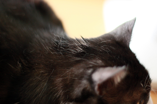 しばらくは、気になって首を精一杯後ろに回して舐めてます。