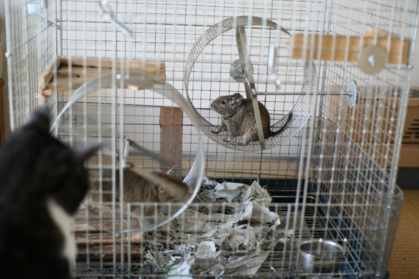 (さらに下には、いちごがせっせと新聞紙で寝床を製作中