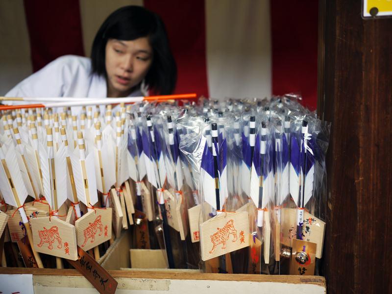 2010年の凶の方向(南西)に矢尻を向けて飾るのだそう・・・。