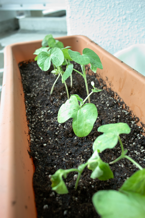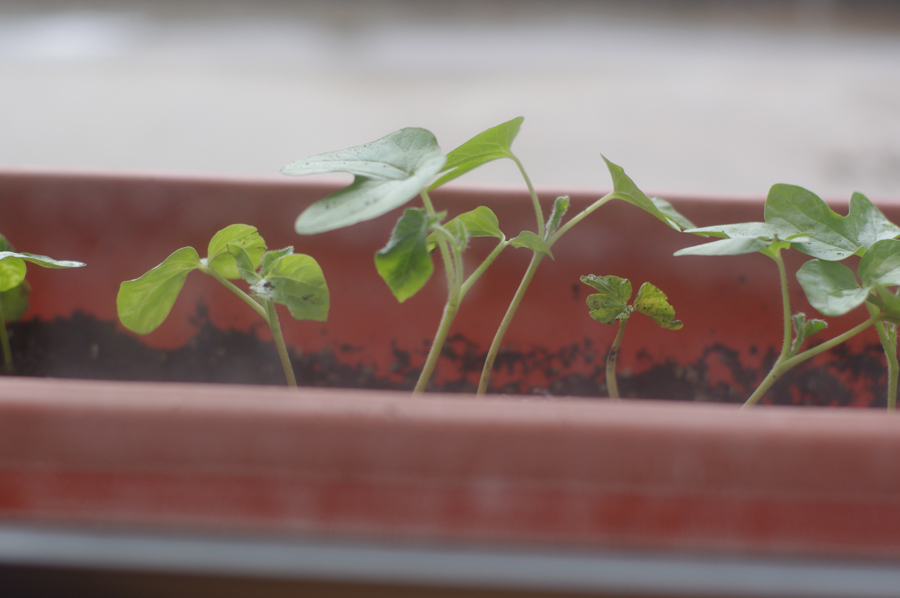 朝顔をプランターに植えました