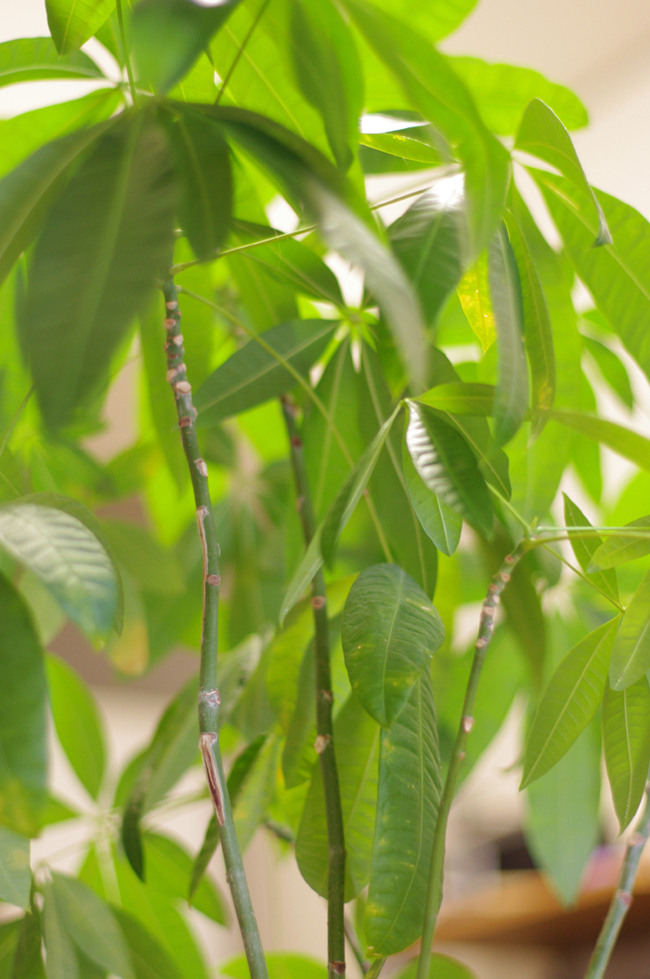 家のベランダで葉っぱを食べるちっちから芽を守りながら