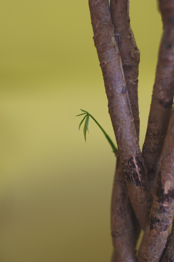 と、つるを巻きつける長い棒の前で考え、