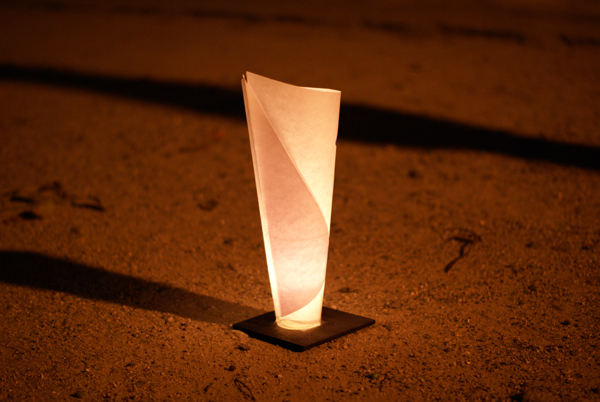 くるりと巻かれた和紙のような中にロウソクのゆらゆらと揺れる様が