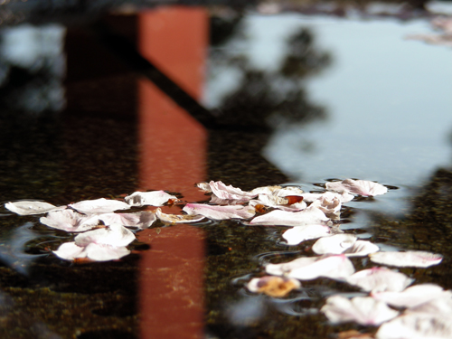 満開の頃はもう過ぎ、散り始めた桜