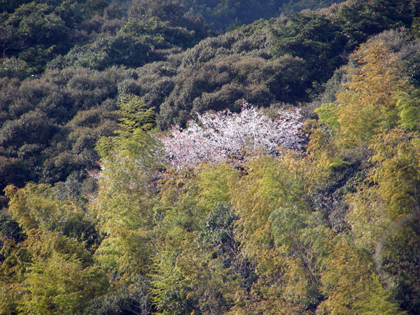 この時期だけ見られる光景ですが、山を見ていると緑の木々の中に