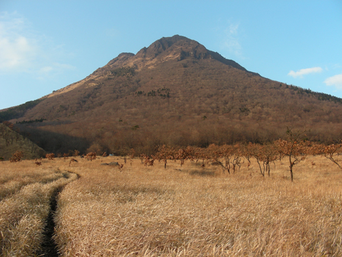 雪化粧前の由布岳は、一面茶色でした。