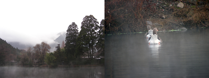 温泉が湧く湖なので、この日は湯気が幻想的に見えました