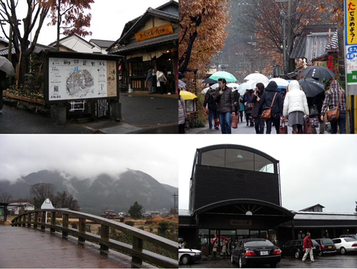 雨でも人通りの多い湯布院。