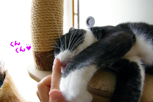指を近づけると、ぴたっと鼻をくっつけて匂ってくれます。