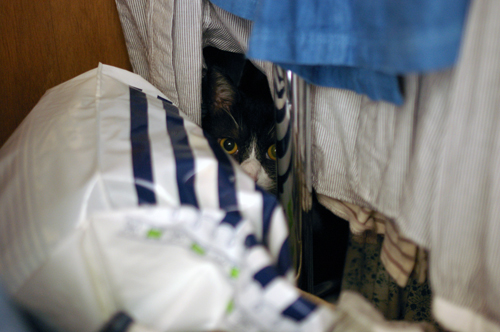 押し入れに隠れてしまいました。