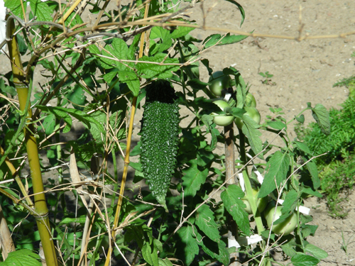 お義母さんが育てているゴーヤも 太陽のエネルギーをもらって