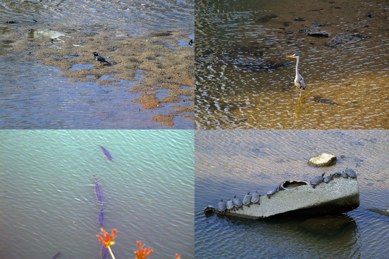 甲羅干しに並んでいるかめ等・・・。