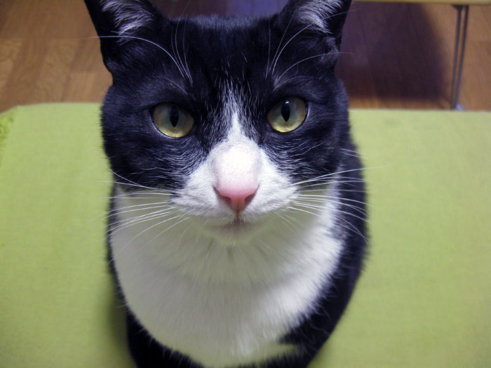 ぐ~?ぱ~? (ちょっと荒いですが・・・) あくびの瞬間!! ヒゲが シャッキーン! ん?!魚の目??? 何見てるの? ひそかに好きなちっちの後姿。 なに僕であそんでるにゃ! ごめんごめん・・・。 やっぱり 正面がかわいいね♪