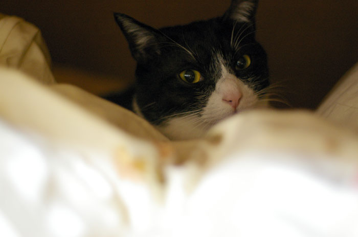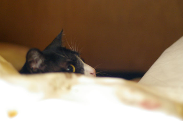 布団をめくるものなら、パシッと猫パンチをくらう。