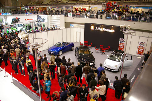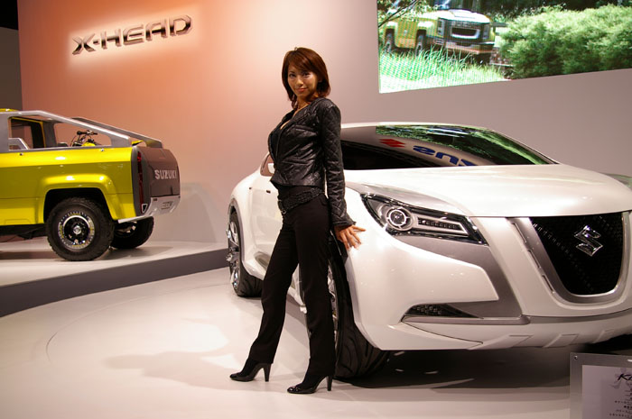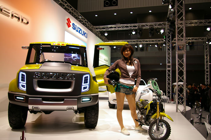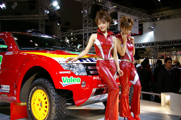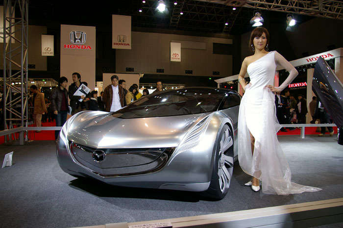 国産車ゾーン(マリンメッセ)はお姉ちゃんたちが音楽に合わせてダンスしたり、ポーズをとってくれたり。
